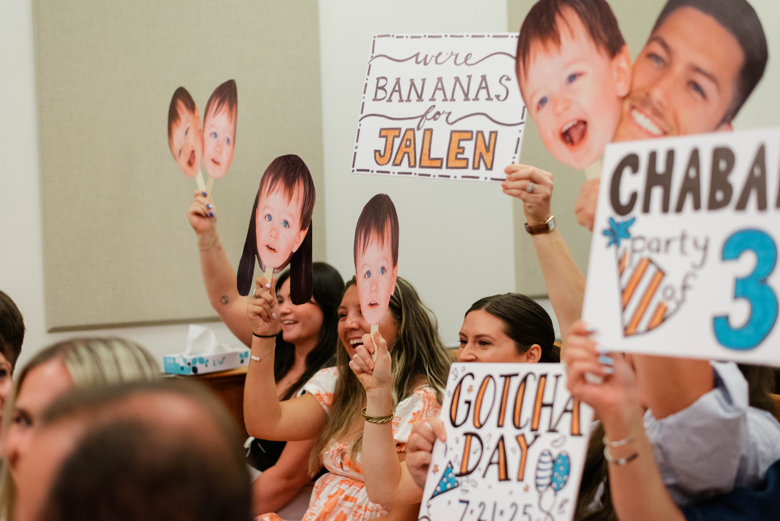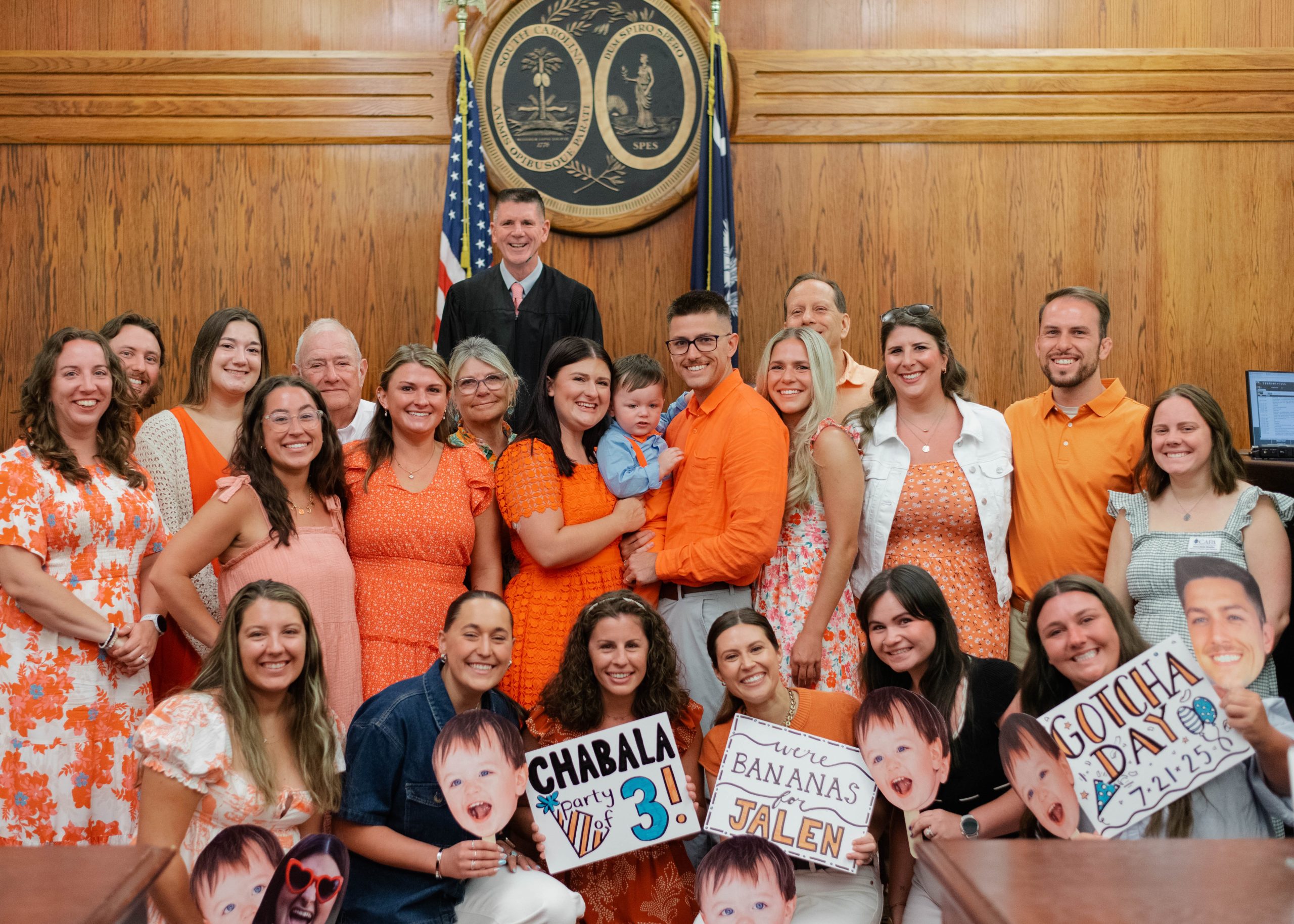 Jalen’s adoption day was nothing short of magic as Jolie and Dillon’s closest friends and family – dressed in orange from head to toe – piled into the courthouse to celebrate a new addition to the Chabala family.
