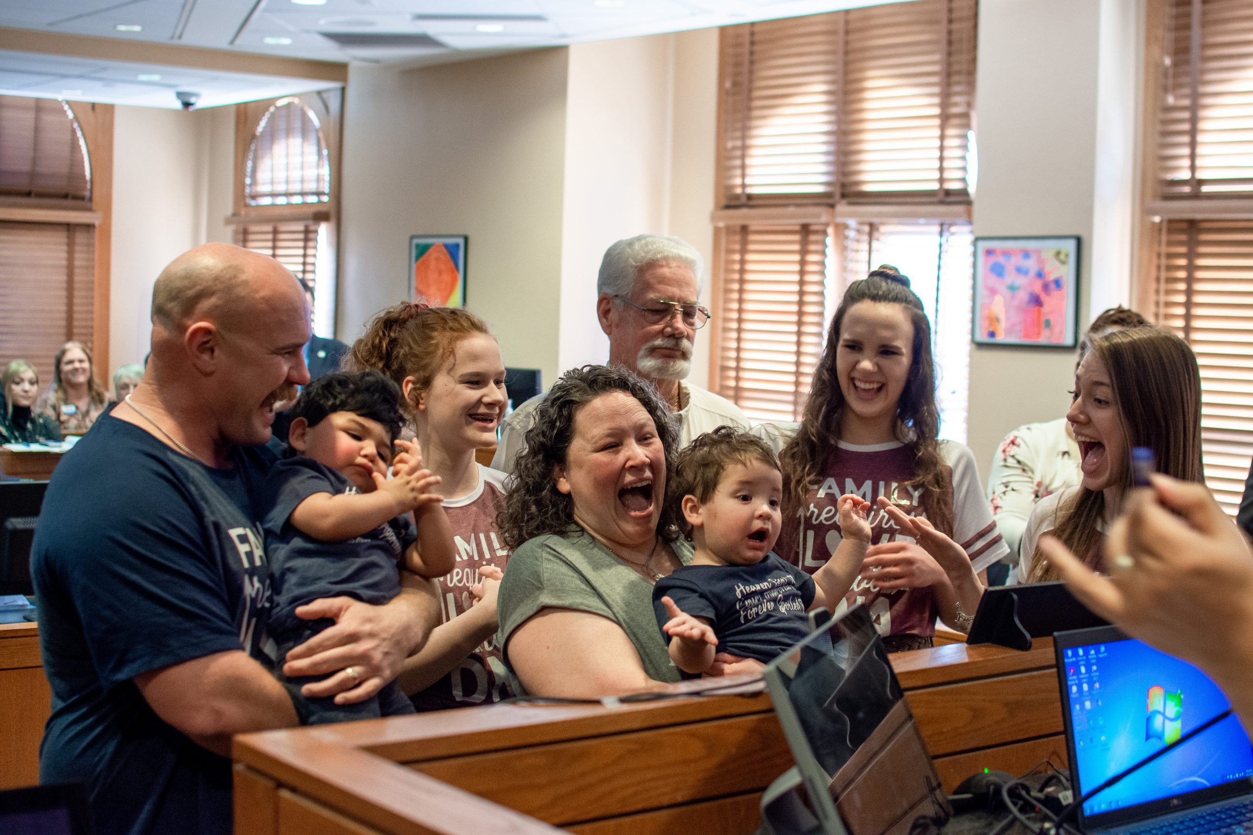 Both Joseph and Jonathan’s mothers relinquished their parental rights, allowing the Pierces to add two 6-month-old babies to their family.